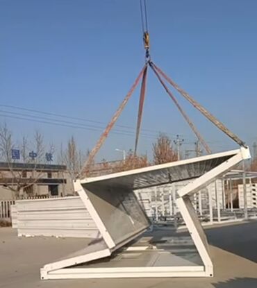 6*3 Модульное складное здание контейнерного типа, предназначенное для быстрой сборки и транспортировки. Конструкция включает стены с окнами и дверью, что делает его пригодным для использования в качестве жилого, офисного или складского помещения. Легко разворачивается и устанавливается, идеально подходит для временного или постоянного размещения, строительных площадок или удаленных объектов.