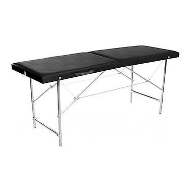 Складной массажный стол - Конструкция: раскладной, двухсекционный, на металлическом каркасе. - Поверхность: мягкая обивка из кожзаменителя тёмного цвета, легко очищается от масел и дезсредств. - О...