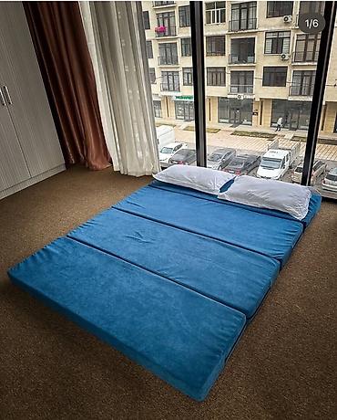 Цвет: синий. Тип: складной матрас-диван (трансформер). Секции: 4, с чехлами на молнии.