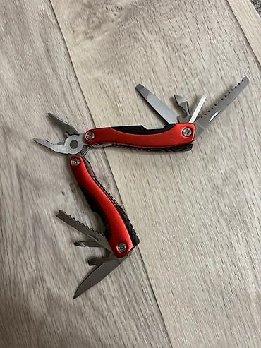 Компактный многофункциональный инструмент в металлическом корпусе с красными накладками и вставками из черного пластика. Поставляется в текстильном чехле на липучке.