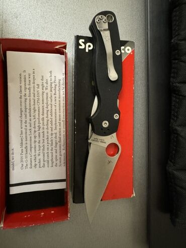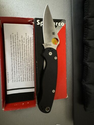 - В комплекте: фирменная коробка Spyderco и документация, видимые на фото.