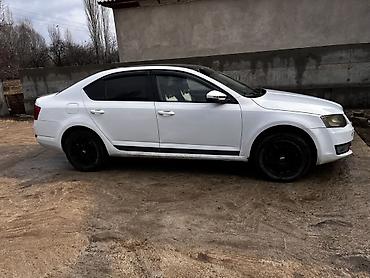 Skoda Octavia (седан), белый цвет, черные легкосплавные диски.