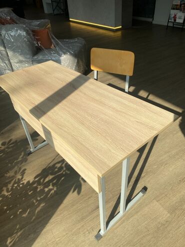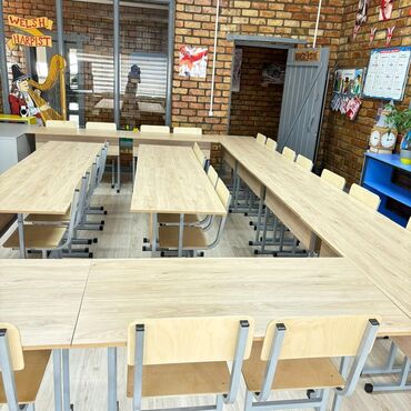 - Варианты: одиночная парта со стулом; на фото представлены комплектации для целого класса.