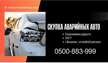 Скупка авто, в том числе аварийных и неисправных. Принимаем машины после ДТП, с неисправным мотором/коробкой, не на ходу, “на запчасти” Работаем круглосуточно 24/7. Выезд по Бишкеку и в любой регион, также по Кыргызстану (Ош, Баткенская область, Талас, Нарын, Токмок Токтогул) и Казахстану (Алматы) Оцениваем дорого, оперативный выезд и забор автомобиля из любого места?