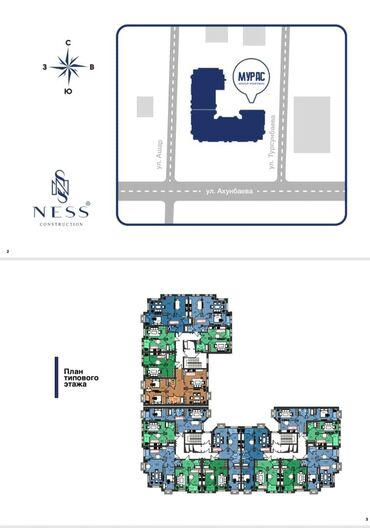 Скупка🔥🔥🔥,Продается 1 ком кВ , Ахунбаева/Ашар CК Ness Construction ЖК Мурас 1 ком кв 40.19м2 сдача ПСО осень 2026 7/10 этаж 48500 $