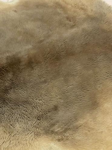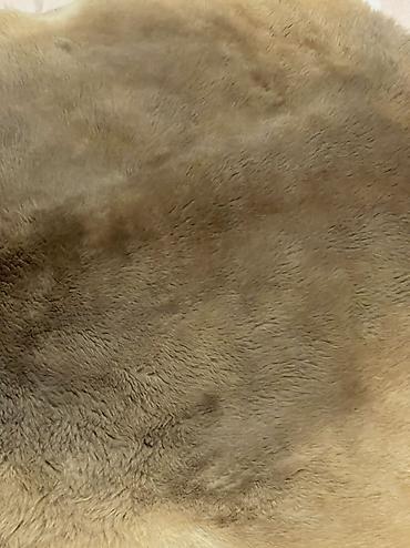 - Натуральный мех: мягкий, густой ворс, равномерная окраска в тёплых песочно-бежевых тонах.
