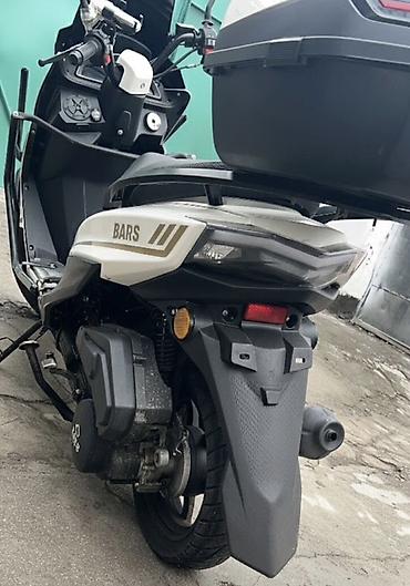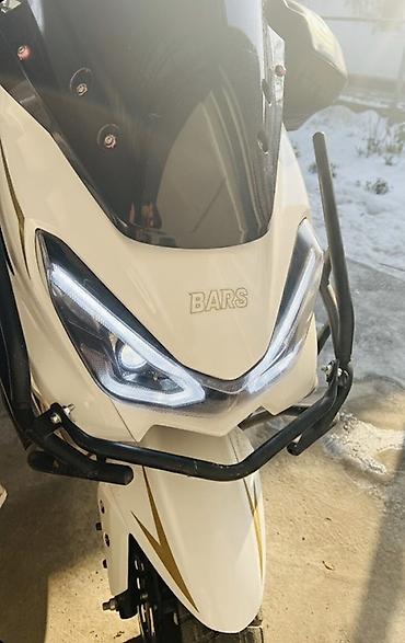 Скутер BARS (бензиновый, вариатор) - Кузов: городской макси-стиль, бело‑черный пластик, высокий ветровик. - Приборная панель: цифровой дисплей (спидометр, индикаторы); справа индикатор уровня топл...