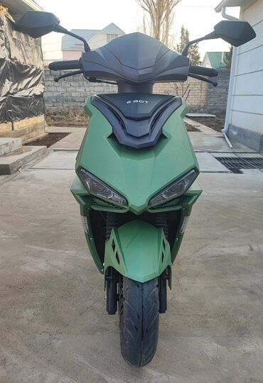 Скутер (бензиновый), городского класса Описание: - Компактный одноцилиндровый скутер с вариатором. - Колеса на литых дисках ярко‑салатового цвета, внедорожный протектор шин. - Передний и задний ди...
