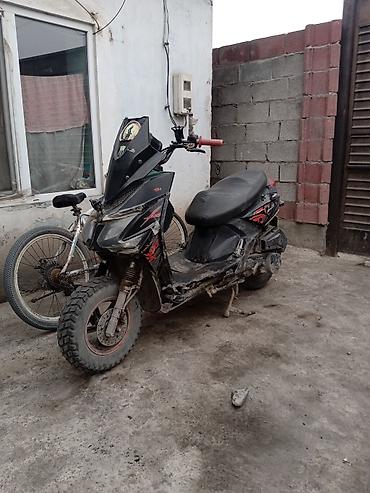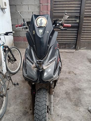 Скутер Kawasaki (модель по наклейкам серии X) с вариаторной трансмиссией. Двигатель — одноцилиндровый, воздушное охлаждение; запуск — электростартер и Приборная панель со спидометром до 120 км/ч, индикатором уровня топлива и контрольными лампами. Передняя вилка телескопическая, задняя подвеска — двойные амортизаторы. Тормоза: спереди дисковый, сзади барабанный. Колеса: переднее с внедорожным протектором, заднее дорожное; литые диски. Оснащение: передний бардачок/ниша, центральная и боковая подножки, задние указатели поворота, стоп-сигнал, зеркала (крепления присутствуют), выхлопная система штатного типа. Руль с кнопочным блоком управления, красные грипсы. Цвет пластика — черный