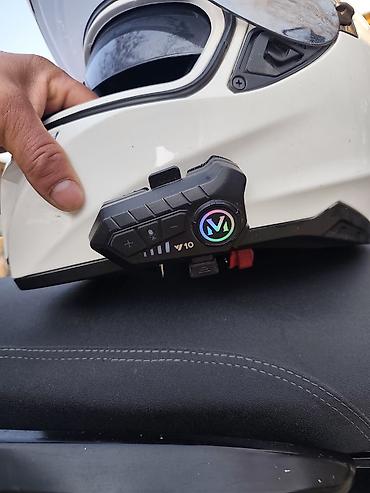 - Закрытый мотошлем (модуляр/интеграл) с прозрачным внешним визором и внутренними затемнёнными очками, вентиляцией на подбородке и верхних каналах.