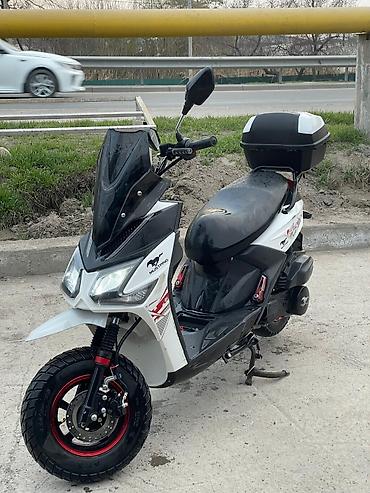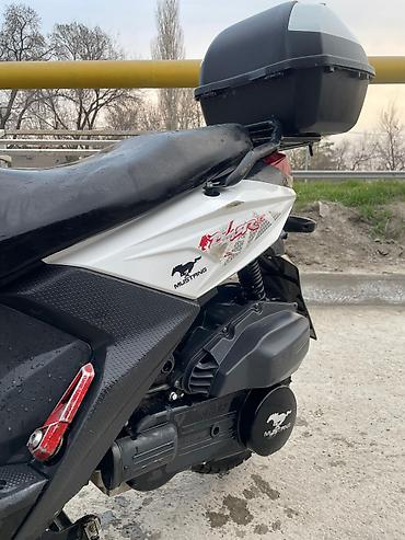 Скутер Mustang (бензиновый) - Кузов: спортивный дизайн, бело‑черный