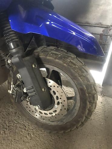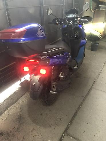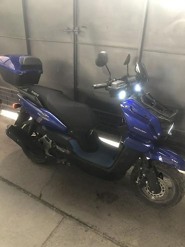 Подходит для города и доставок: маневренный, экономичный, с хорошим светом и вместительным багажом. Цвет: яркий синий с черными элементами. Модельные обозначения на пластике: Discovery, Ruber.