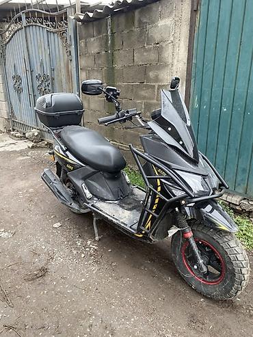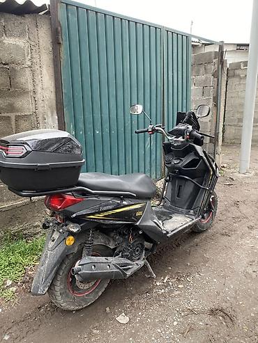 Скутер Самурай, черный, с защитным силовым обвесом спереди.