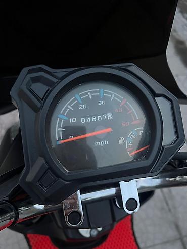 Отлично подходит для ежедневных поездок по городу, доставки и коротких выездов. Стильный чёрный цвет кузова с акцентами. Пробег на одометре: 046072 (по спидометру в милях). Модель обозначена как 49CC на кузове.