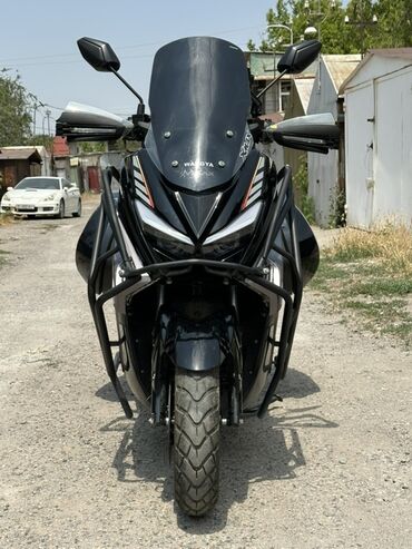 Скутер/максискутер черного цвета с тюнингом для города и туринга. Основные особенности: - Агрессивный облик с высоким матовым ветровым стеклом. - Светодиодная оптика: штатные фары плюс четыре допо...