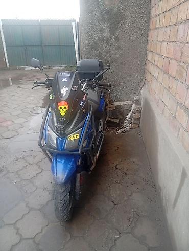 Скутер Yamaha (наклейки Yamaha на облицовке), синий/черный пластик, вариатор. Особенности и комплектация: - Передняя и задняя оптика: линзованные фары спереди, цельный задний фонарь. - Двухместное...
