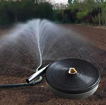 - Принцип работы: по длине рукава расположены микроперфорации, через которые вода равномерно распыляется веером. Укладывается вдоль рядов растений или по центру участка.