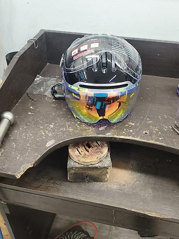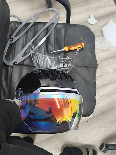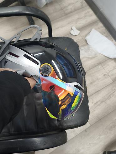 - Визор: большой панорамный, зеркальный хамелеон; поднимается/опускается вращающимися фиксаторами по бокам. Защита от встречного ветра, пыли и яркого солнца