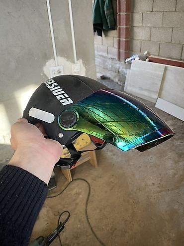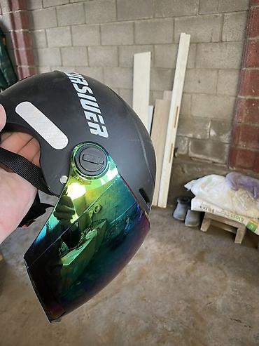 - Визор: зеркальный хромированный (радужный) экран с широкой зоной обзора; откидывается одной рукой с помощью бокового регулятора.