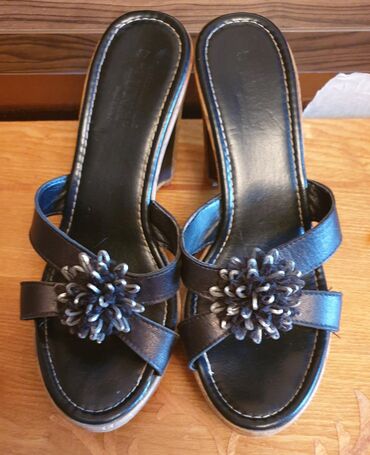 Босоножки кожаные б/у38 размер,каблук 5-6см. Смотрятся неординарно