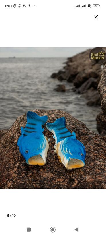 Рыбные шлёпанцы «Fish Slippers» — яркие голубые сабо в форме рыбы.