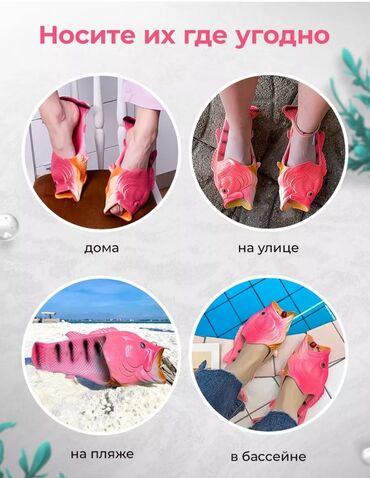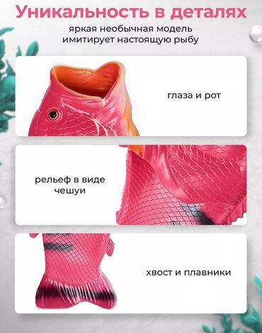 Шлепанцы в виде рыбы (пара). В наличии 3 пары. Новые. Лёгкие по весу. Размер 40. Ориентировочно на размер 38, 39, 40. Жибек жолу/Панфилова. - Реалистичный дизайн: объёмная «чешуя», плавники и...