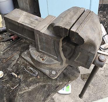 Тяжёлые слесарные тиски с поворотным основанием.