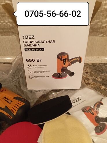 Полировачная машинка фирма RAZ 650 ватт диаметр диска 125 мм новый есть регулировка скорости в подарок губка для полировки автомобиля цена 3500 сом