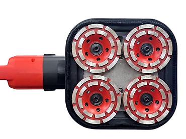 Плиткорез-шлифовальная машина по бетону/камню с квадратной подошвой и блоком из 4 алмазных чашек.