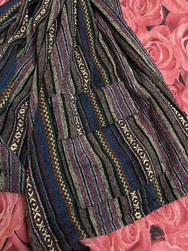 - Рисунок: этнические вертикальные полосы с орнаментами в оттенках черного, темно‑синего, бордо, оливкового и горчичного.