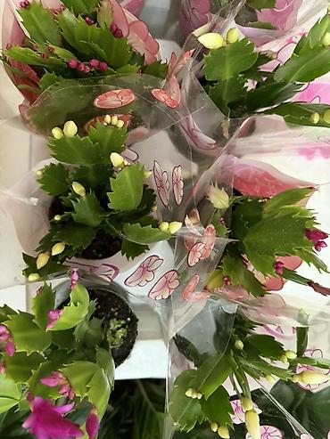 - Компактное комнатное растение с сегментированными зелёными побегами и яркими бутонами розово‑пурпурной гаммы.