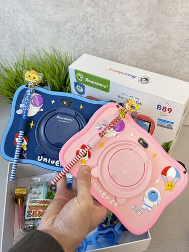 Детский планшет G-Vill G9A - Яркий коричневый чехол (фронтальная видна над экраном, задняя — на спинке). - Экран с диагональю около 7–8", под защитным бампером с утолщенными углами. - Съемный «об...
