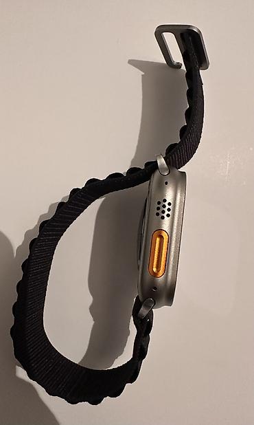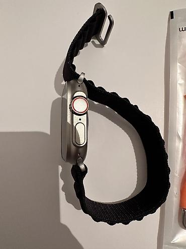 Смарт‑часы в форм‑факторе Apple Watch Ultra. Особенности: - Корпус цвета «титан/серый» с выступающей защитой экрана и крупной заводной кнопкой, дополнительная оранжевая кнопка действия на левом то...