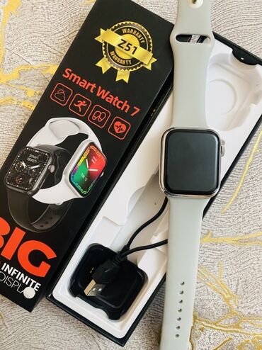 Смарт-часы Apple Watch Series 7, размер 45 мм, корпус алюминий, стекло Ion‑X. На задней крышке: датчики сердечного ритма/SpO₂, оптические и электрические сенсоры. Влагозащита WR50 (до 50 м). Версия...