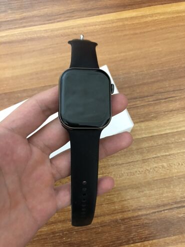 Смарт-часы (форм-фактор как у Apple Watch), черные, с силиконовым