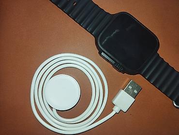 Смарт‑часы с квадратным экраном и силиконовым ремешком (черный цвет), комплект с магнитной зарядкой и сетевым адаптером. Основные функции: - Сенсорный цветной дисплей с настраиваемыми циферблатами...