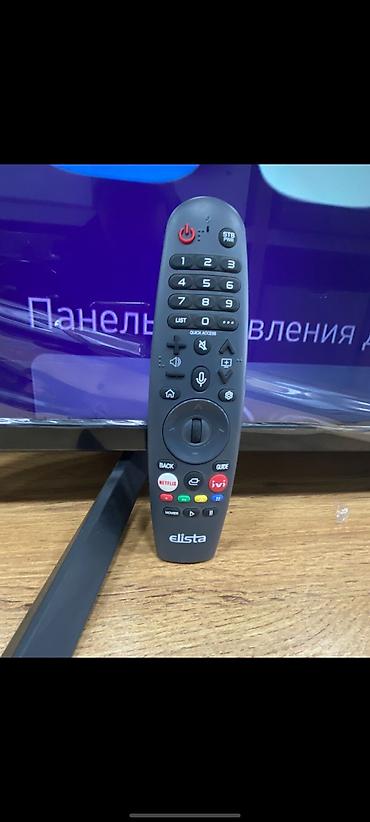 - Пульт ДУ Elista с блоком цифр, колесиком‑джойстиком, кнопками быстрого доступа (Netflix, ivi и др.), голосовым управлением, кнопкой GUIDE, BACK, регулировкой громкости и прокруткой.