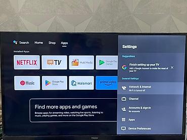 - Установленные приложения: Netflix, Prime Video, YouTube/TV, Music, мультимедийный проигрыватель, Haismart и др.