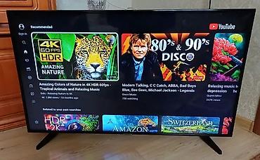 Современный смарт-телевизор с дисплеем высокой четкости, идеально подходящий для просмотра контента в формате 4K HDR. Устройство оснащено предустановленными приложениями популярных потоковых сервисов, таких как YouTube, Netflix, Amazon Prime Video и Apple TV. Поддержка HDR и 4K обеспечивает яркое и детализированное изображение. Телевизор выполнен в черном цвете с тонкими рамками и установлен на устойчивые V-образные ножки, что позволяет легко интегрировать его в любой интерьер. Идеально подходит для домашнего кинотеатра или игровой комнаты.