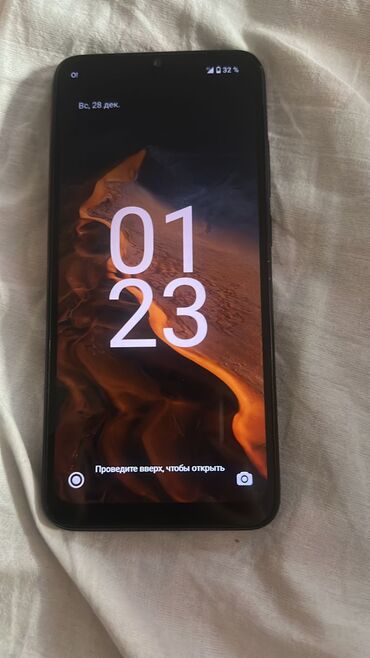 - Экран: крупная диагональ с каплевидным вырезом под фронтальную камеру. На фото видно интерфейс Android с крупными часами.