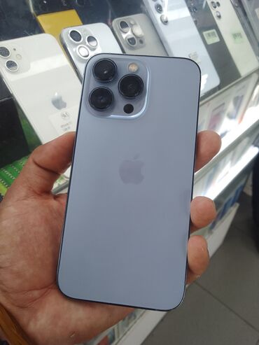 Apple iPhone 13 Pro, цвет Sierra Blue. Комплект: оригинальная коробка. На блоке камер установлены декоративные защитные кольца. В комплект также входят 6 чехлов разных дизайнов (силиконовые и прозр...