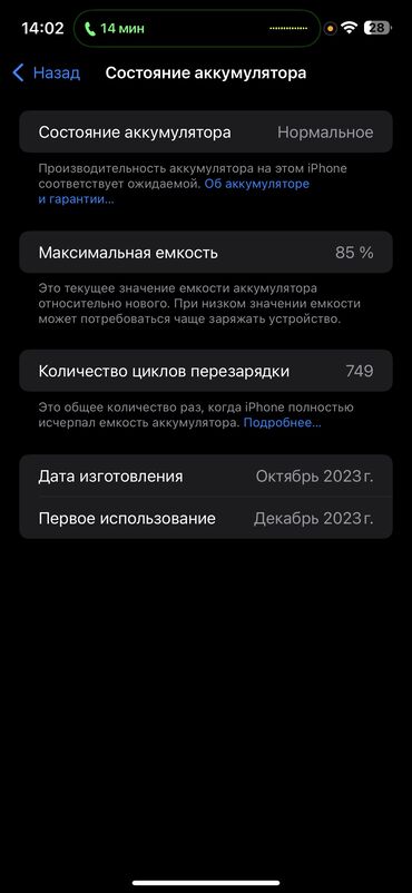 • Экран 6.1” Super Retina XDR OLED, Dynamic Island