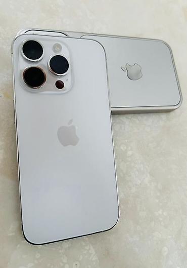 Смартфон Apple iPhone (серия с Dynamic Island), белый цвет.