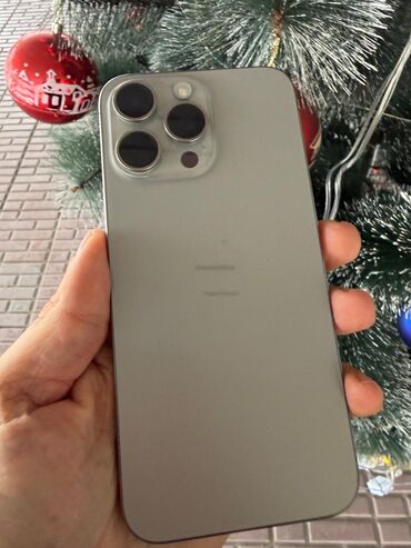 IPhone 15 Pro Max, 256 ГБ АКБ 90% - Цвет: серый (Natural Titanium/серебристый на фото) - Память: 256 ГБ - Экран: 6.7", OLED, частота 120 Гц (ProMotion). На нижнем левом углу — небольшой подтек, се...