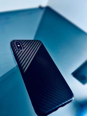 Смартфон Apple iPhone X () в Белом цвете с защитным чехлом под карбон.