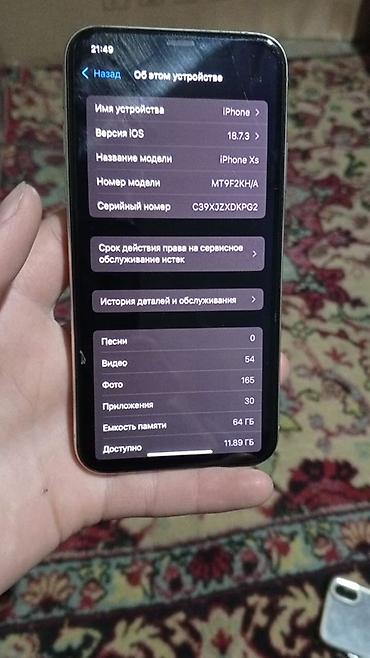 IPhone XS, 64 ГБ, модель MTAG2LL/A Характеристики и особенности: - Память: 64 ГБ (доступно ~45,78 ГБ на скриншоте) - Версия iOS: 18.7.3 - Экран: OLED Super Retina, Face ID - Камера: двойная основ...