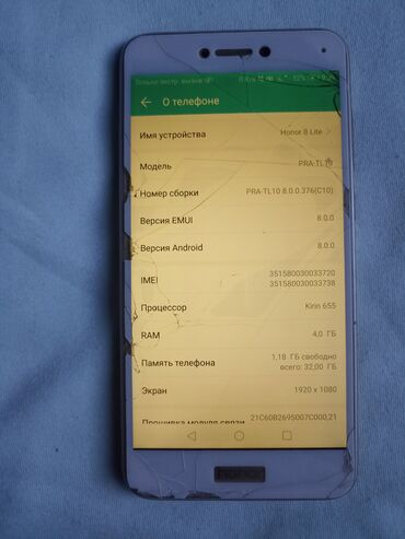 - ОС: Android 8.0, оболочка EMUI 8.0.
