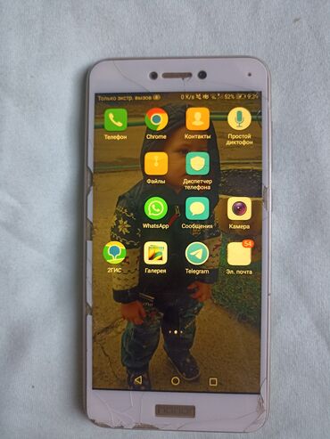 - Экран функционирует, сенсор откликается; на стекле видны трещины по периметру и по поверхности.
