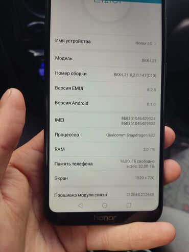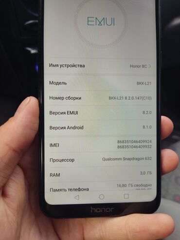 Honor 8C, Б/у, 32 ГБ, цвет - Черный, 2 SIM