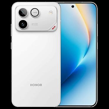 - Дизайн: тонкий корпус, плоские грани, матовая белая задняя панель; минималистичный логотип HONOR. Акцент «WIN» на модуле камер подчеркивает геймерский характер устройства.